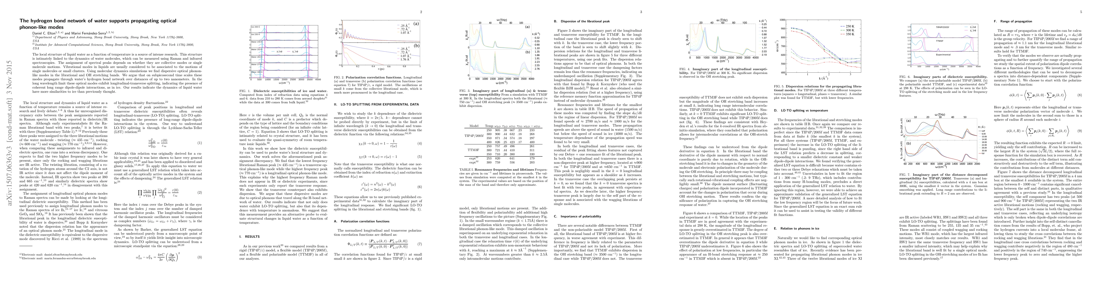 This research reveals that liquid water's hydrogen bond network supports the propagation of optical phonon-like modes over distances up to two nanometers on subpicosecond timescales. The study suggests that liquid water's dynamics share more similarities with ice than previously understood, evidenced by the longitudinal-transverse splitting observed in these modes.
