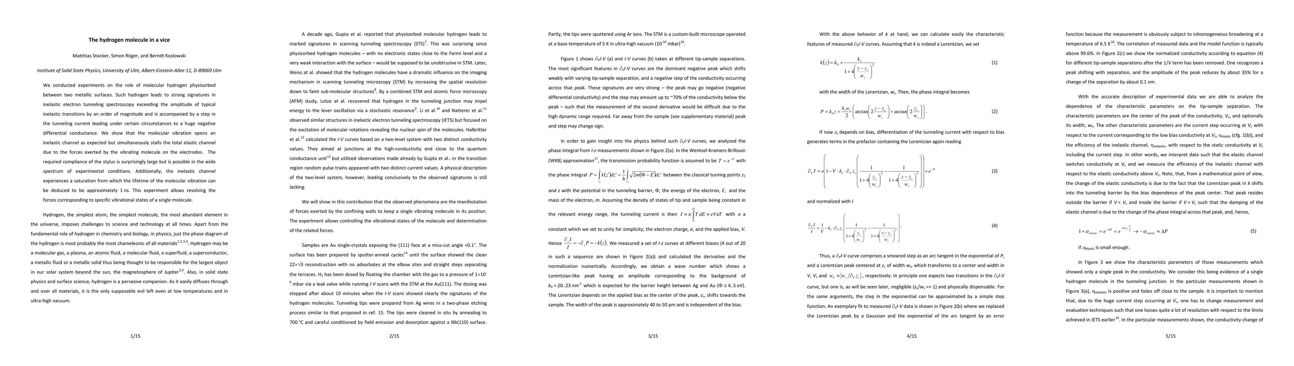 Researchers discovered a significant increase in signatures of molecular hydrogen physisorbed between two metallic surfaces, leading to strong negative differential conductance. The study also found that the molecular vibration opens an inelastic channel with a saturation point, allowing for the measurement of the molecule's lifetime.