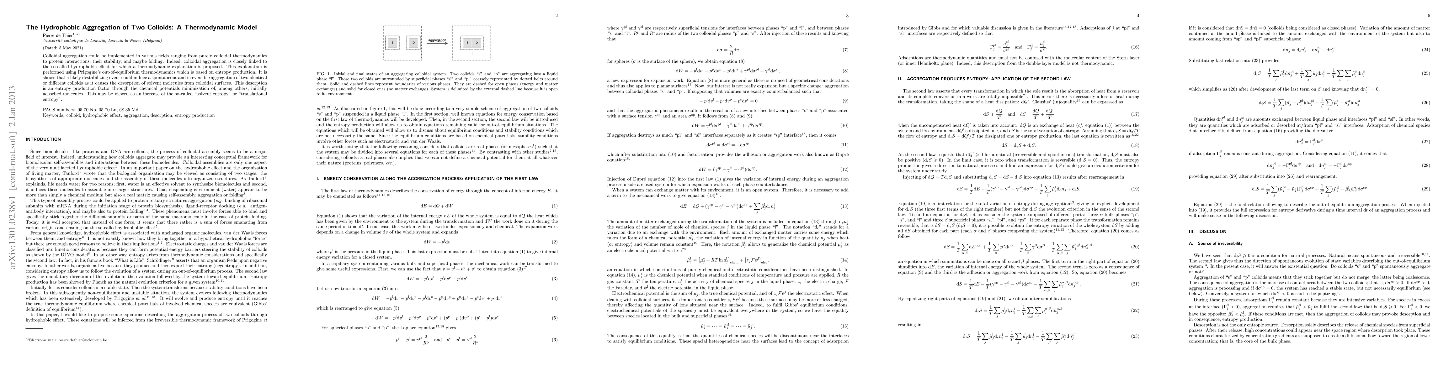 Two colloids can spontaneously aggregate due to solvent molecules desorbing from their surfaces, increasing entropy production and leading to irreversible aggregation.