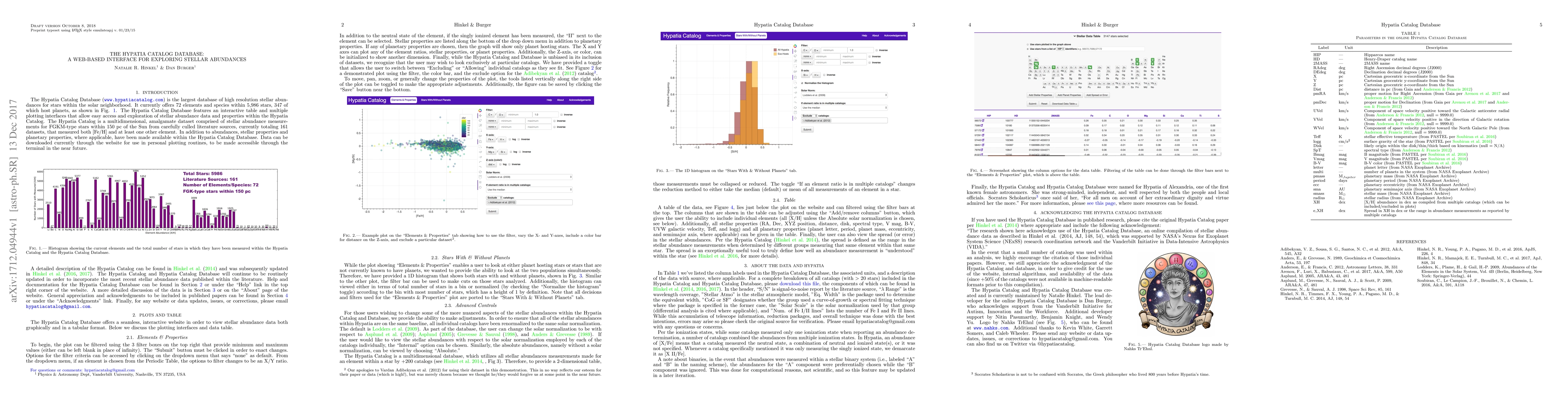 The Hypatia Catalog Database (www.hypatiacatalog.com) is the largest database of high resolution stellar abundances for stars within the solar neighborhood. It currently offers 72 elements and species within 5,986 stars, 347 of which host planets. The Hypatia Catalog Database features an interactive table and multiple plotting interfaces that allow easy access and exploration of stellar abundance data and properties within the Hypatia Catalog (Hinkel et al. 2014, 2016, 2017). The Hypatia Catalog is a multidimensional, amalgamate dataset comprised of stellar abundance measurements for FGKM-type stars within 150 pc of the Sun from carefully culled literature sources, currently totaling 161 datasets, that measured both [Fe/H] and at least one other element. In addition to abundances, stellar properties and planetary properties, where applicable, have been made available within the online Hypatia Catalog Database. Data and plots can also be downloaded through the website for use in personal code or presentations, respectively. The Hypatia Catalog and Hypatia Catalog Database will continue to be routinely updated in order to incorporate the most recent stellar abundance data published within the literature.