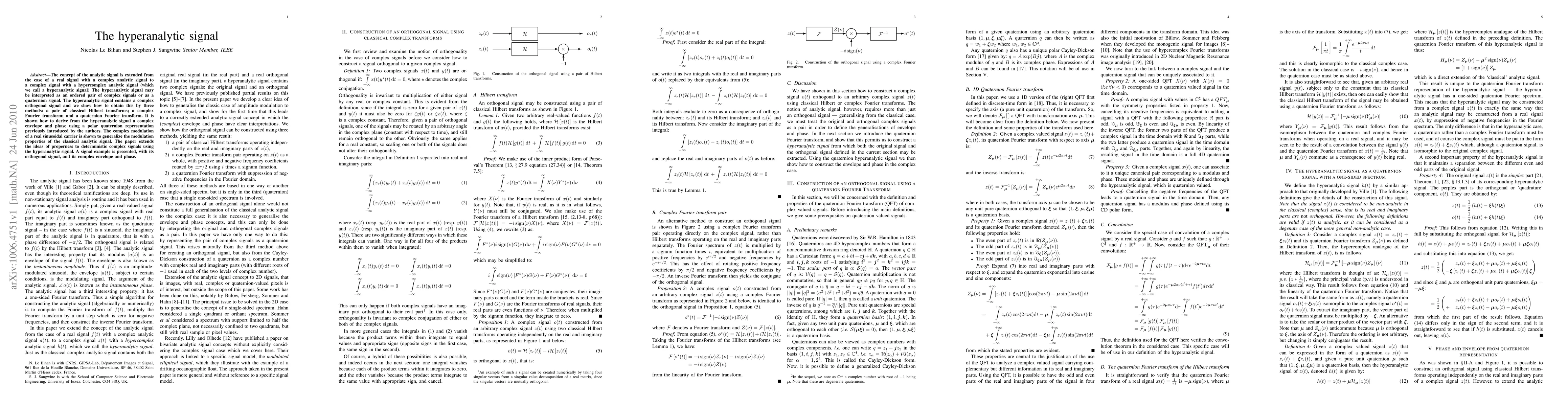 This paper extends the concept of the analytic signal to complex signals, introducing the hyperanalytic signal as an ordered pair of complex signals or a quaternion signal. It demonstrates three methods to obtain the complex orthogonal signal and shows how to derive a complex envelope and phase from the hyperanalytic signal, generalizing modulation properties of the classical analytic signal.