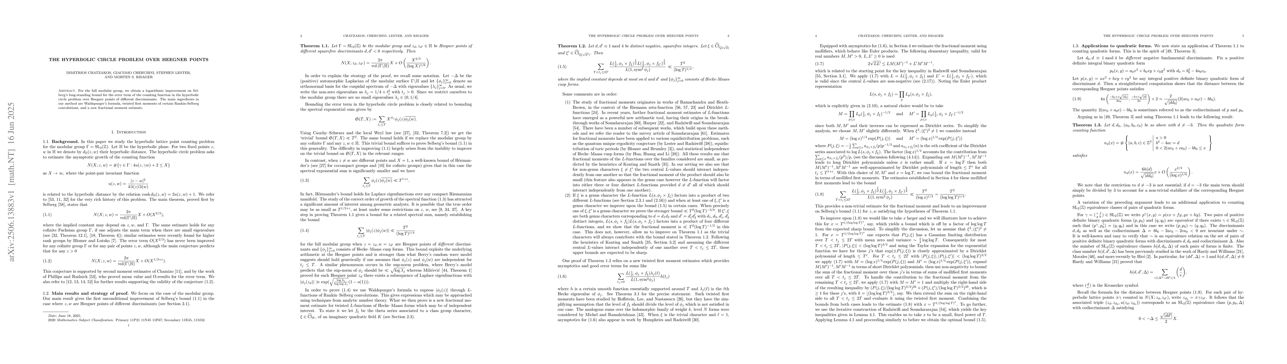 The paper introduces a novel approach combining Waldspurger's formula with fractional moment estimates to refine Selberg's bound, marking a technical advancement in the study of the hyperbolic circle problem.