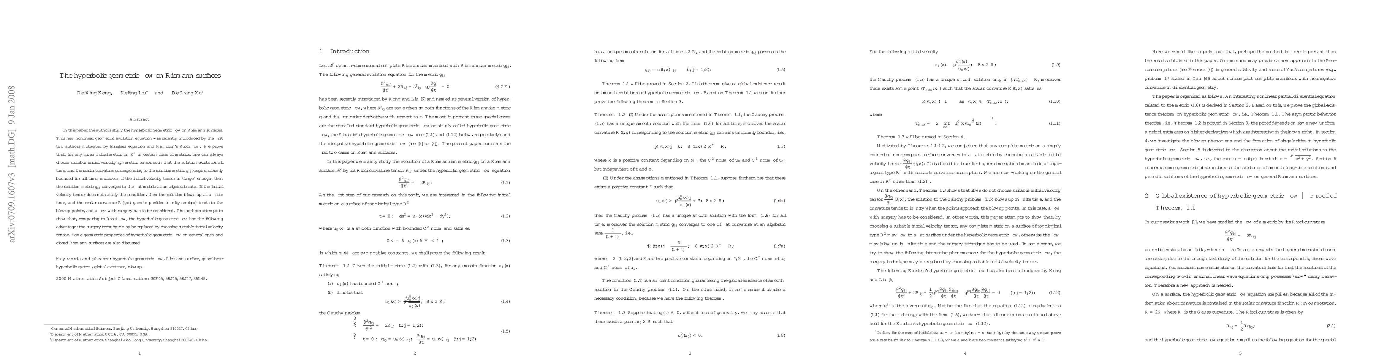 This paper investigates the hyperbolic geometric flow on Riemann surfaces, proving that a suitable initial velocity symmetric tensor ensures the flow's existence and bounded scalar curvature indefinitely. If the initial tensor is unsuitable, the flow blows up, necessitating a flow with surgery, which can be avoided by proper initial conditions.