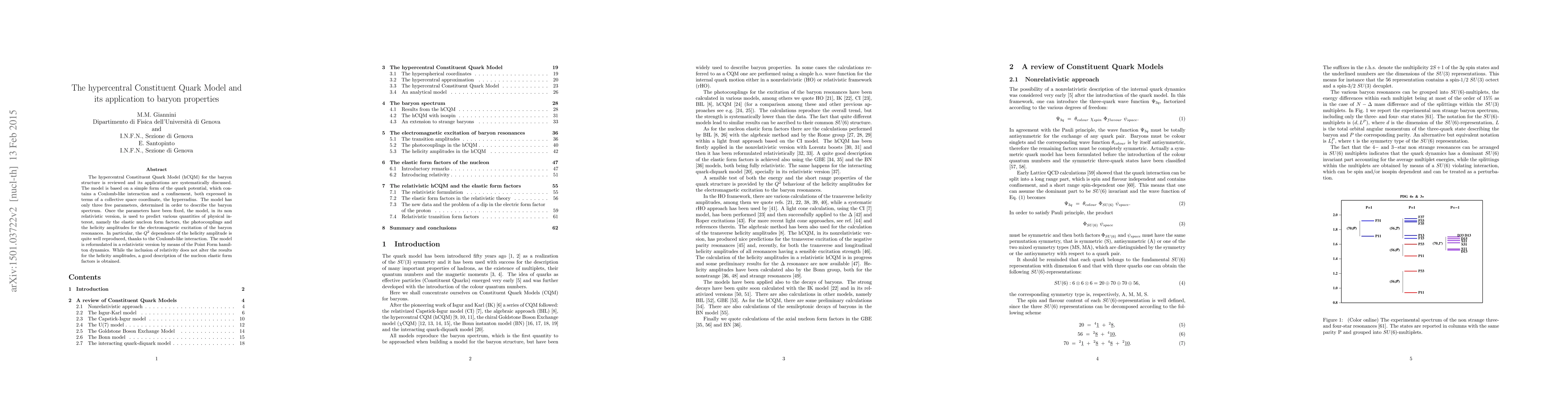 The hypercentral Constituent Quark Model (hCQM) is reviewed for baryon structure, predicting elastic nucleon form factors and electromagnetic excitations. The model, with a simple quark potential and three free parameters, is reformulated relativistically, maintaining accuracy for helicity amplitudes while improving nucleon form factors.