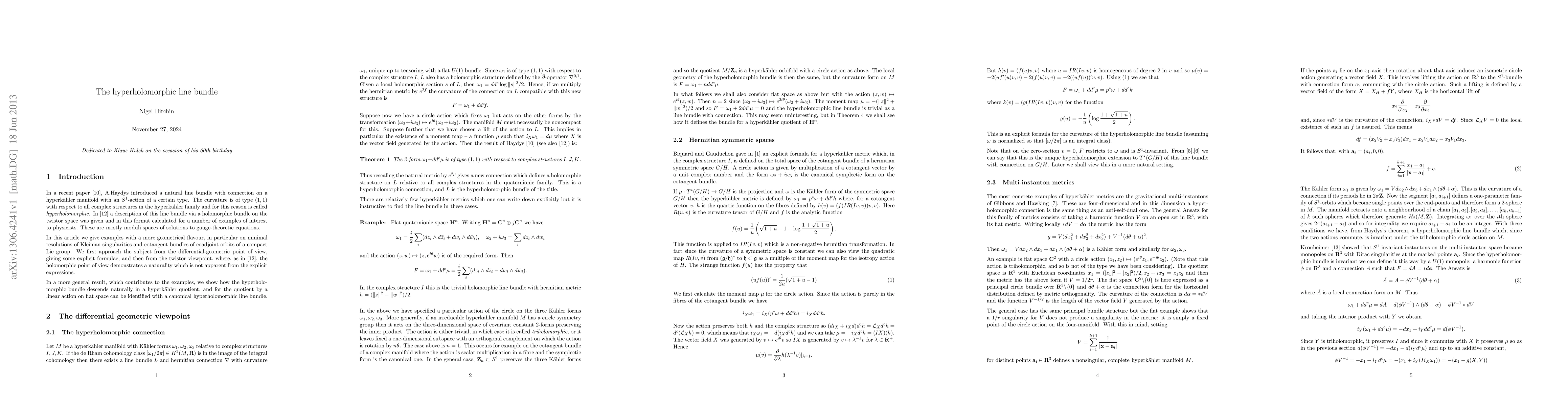 We study the hyperholomorphic line bundle on a hyperkaehler manifold with circle action introduced by A Haydys, and in particular show how it transforms under a hyperkaehler quotient. Applications include ALE spaces and coadjoint orbits.