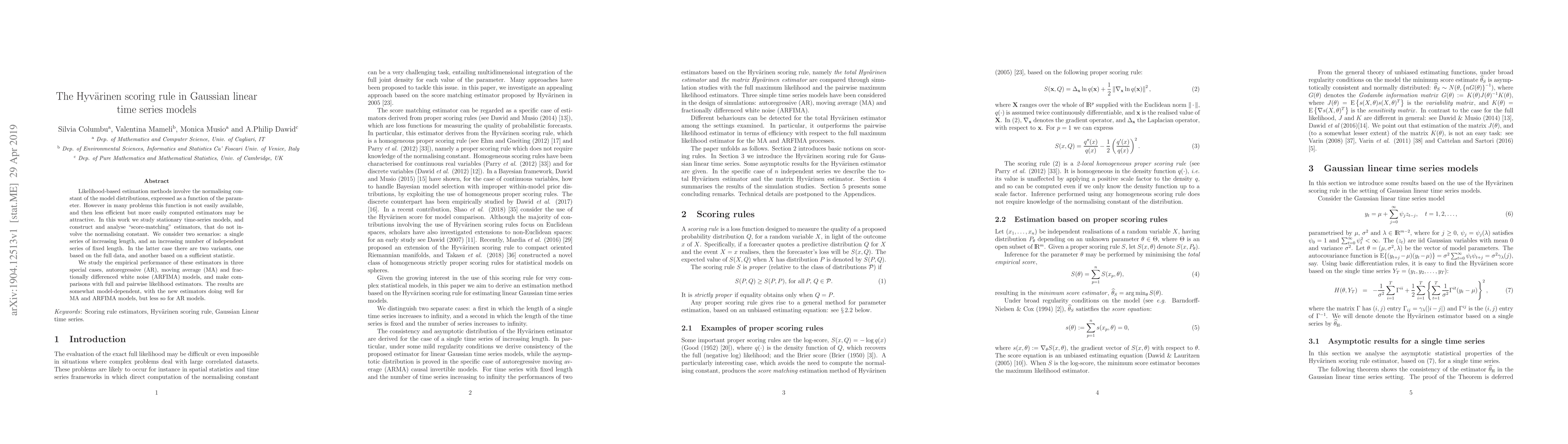 Likelihood-based estimation methods involve the normalising constant of the model distributions, expressed as a function of the parameter. However in many problems this function is not easily available, and then less efficient but more easily computed estimators may be attractive. In this work we study stationary time-series models, and construct and analyse "score-matching'' estimators, that do not involve the normalising constant. We consider two scenarios: a single series of increasing length, and an increasing number of independent series of fixed length. In the latter case there are two variants, one based on the full data, and another based on a sufficient statistic. We study the empirical performance of these estimators in three special cases, autoregressive (\AR), moving average (MA) and fractionally differenced white noise (\ARFIMA) models, and make comparisons with full and pairwise likelihood estimators. The results are somewhat model-dependent, with the new estimators doing well for $\MA$ and \ARFIMA\ models, but less so for $\AR$ models.
