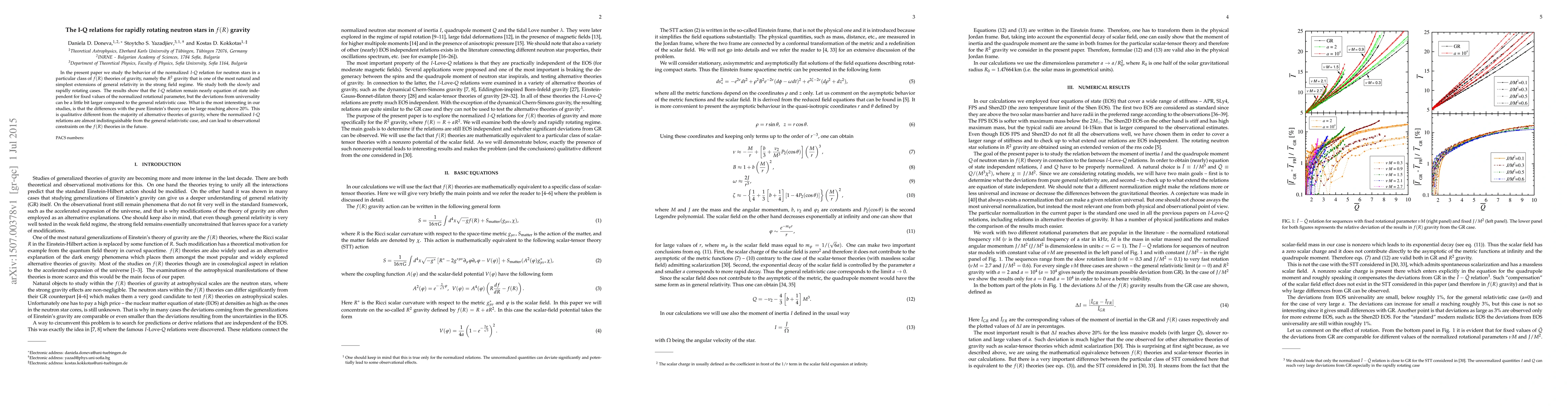 This paper investigates the $I$-$Q$ relation for rapidly rotating neutron stars in $R^2$ gravity, finding that deviations from general relativity can be significant, up to 20%, which may provide future observational constraints on $f(R)$ gravity theories. The results suggest that these deviations are larger than in most alternative gravity theories.