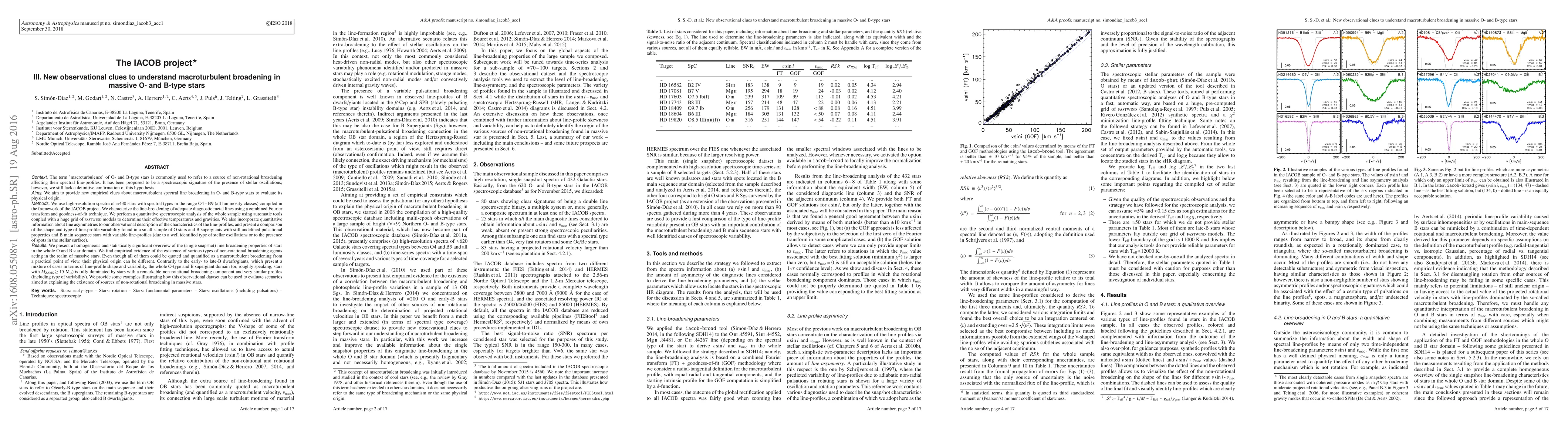 This paper provides empirical evidence on macroturbulent broadening in O- and B-type stars using high-resolution spectra of ~430 stars, revealing various non-rotational broadening agents. It finds that massive stars predominantly exhibit similar non-rotational broadening profiles, suggesting distinct physical origins compared to B dwarfs/giants.
