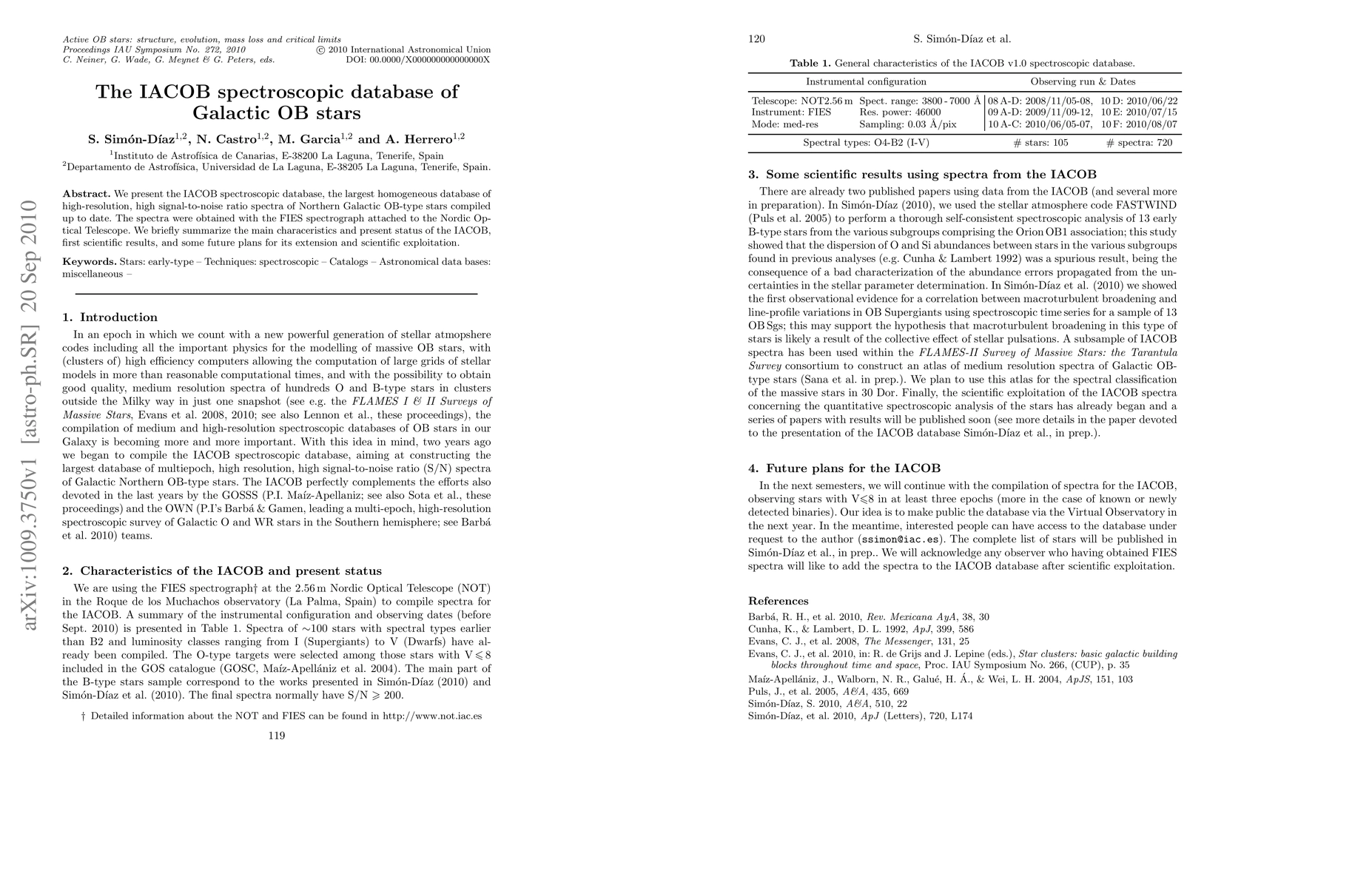 The IACOB spectroscopic database was compiled using the FIES spectrograph attached to the Nordic Optical Telescope, targeting high-resolution, high signal-to-noise ratio spectra of Northern Galactic OB-type stars.
