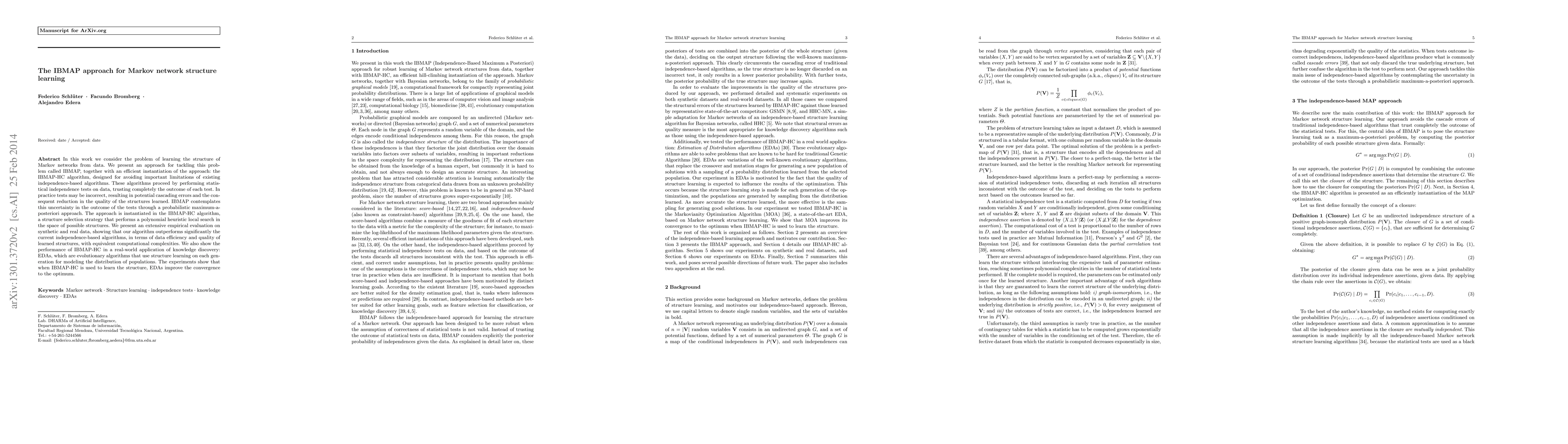 The IBMAP approach introduces a probabilistic maximum-a-posteriori method for learning Markov network structures, instantiated in the IBMAP-HC algorithm, which outperforms existing independence-based algorithms by addressing uncertainty in statistical tests. Empirical evaluations demonstrate superior data efficiency and structure quality, with enhanced performance in evolutionary algorithms for knowledge discovery.