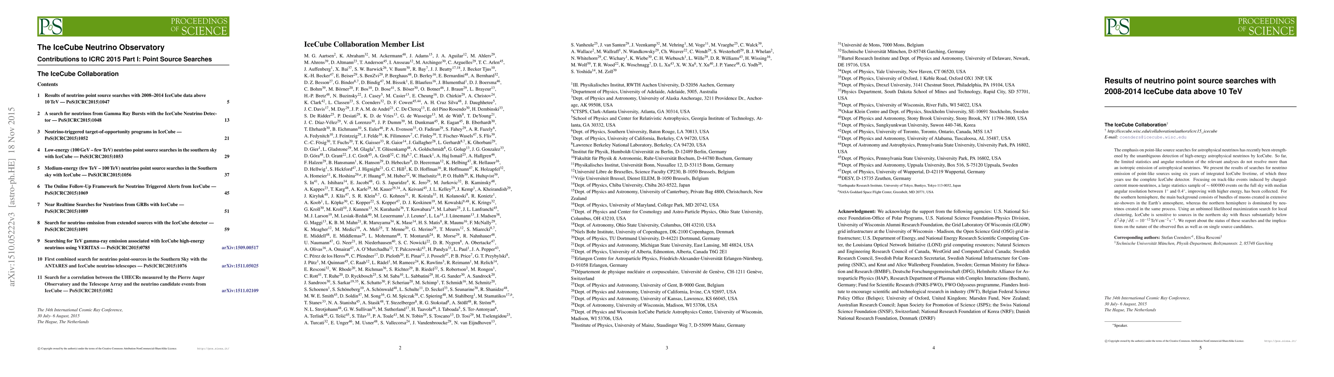 Papers on point source searches submitted to the 34th International Cosmic Ray Conference (ICRC 2015, The Hague) by the IceCube Collaboration.