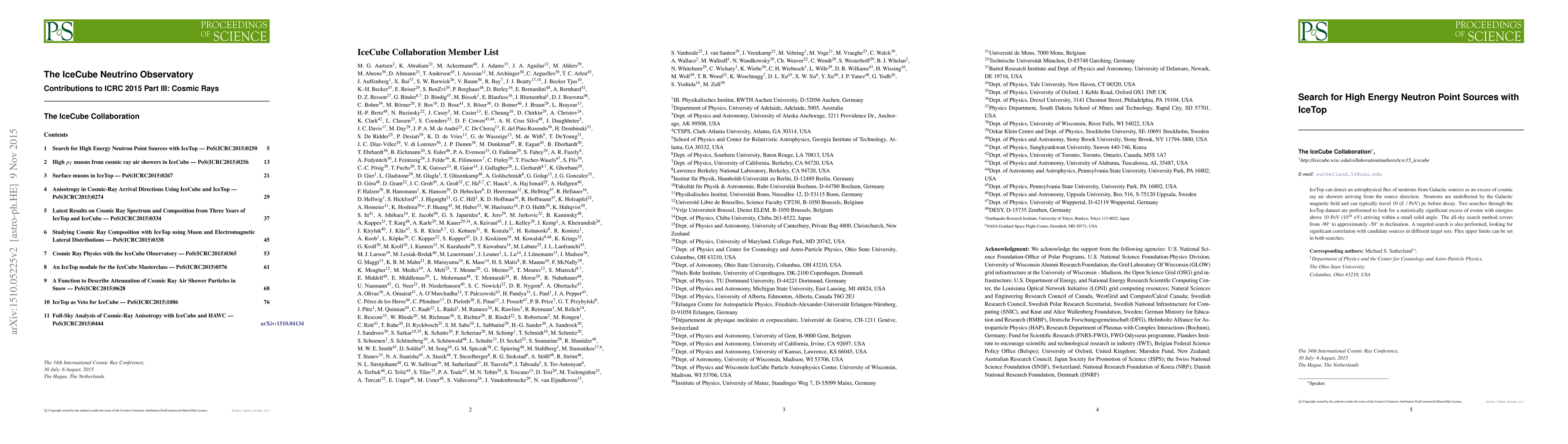The IceCube Neutrino Observatory presented research on cosmic rays at the 34th International Cosmic Ray Conference (ICRC 2015), focusing on new insights and data from their neutrino detection experiments. These contributions highlight the observatory's role in understanding high-energy cosmic ray phenomena.
