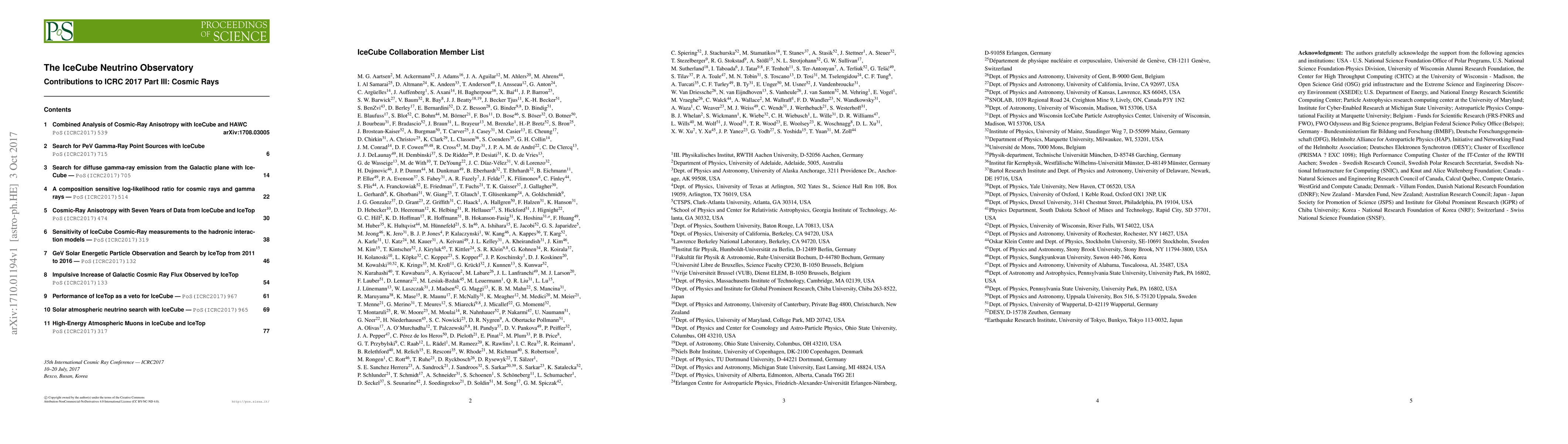 The IceCube Neutrino Observatory presented several papers at the 35th International Cosmic Ray Conference (ICRC 2017) detailing its contributions to cosmic-ray measurements, highlighting the observatory's role in advancing our understanding of high-energy cosmic rays. These findings underscore IceCube's capability to detect and analyze neutrinos, which provide insights into cosmic phenomena.