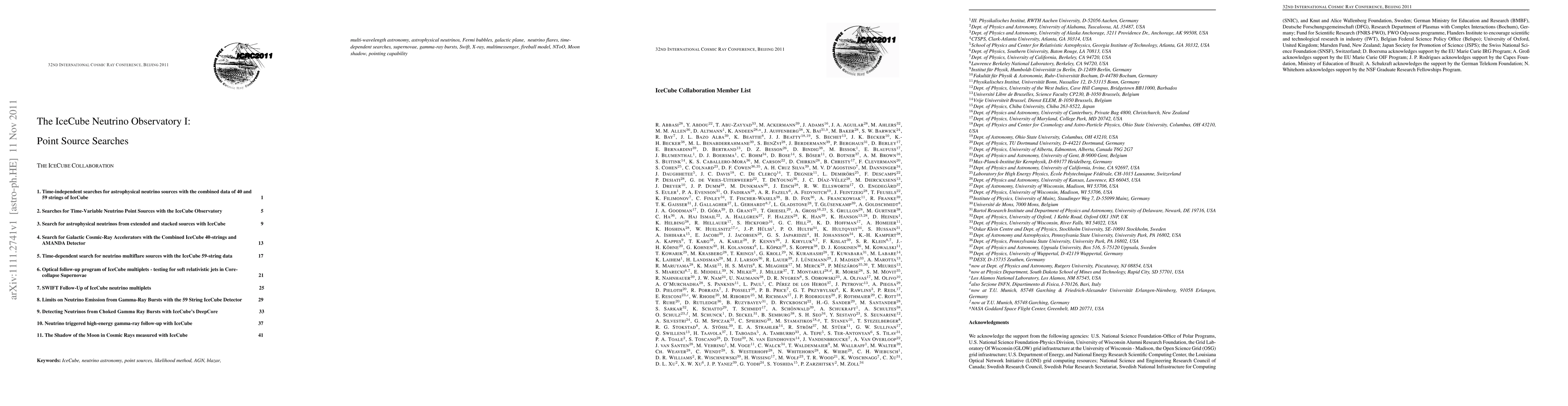 Searches for point sources of astrophysical neutrinos and related measurements: Searches for steady and time-variable sources; Follow-up programs; AGNs; GRBs; Moon shadow; Submitted papers to the 32nd International Cosmic Ray Conference, Beijing 2011.