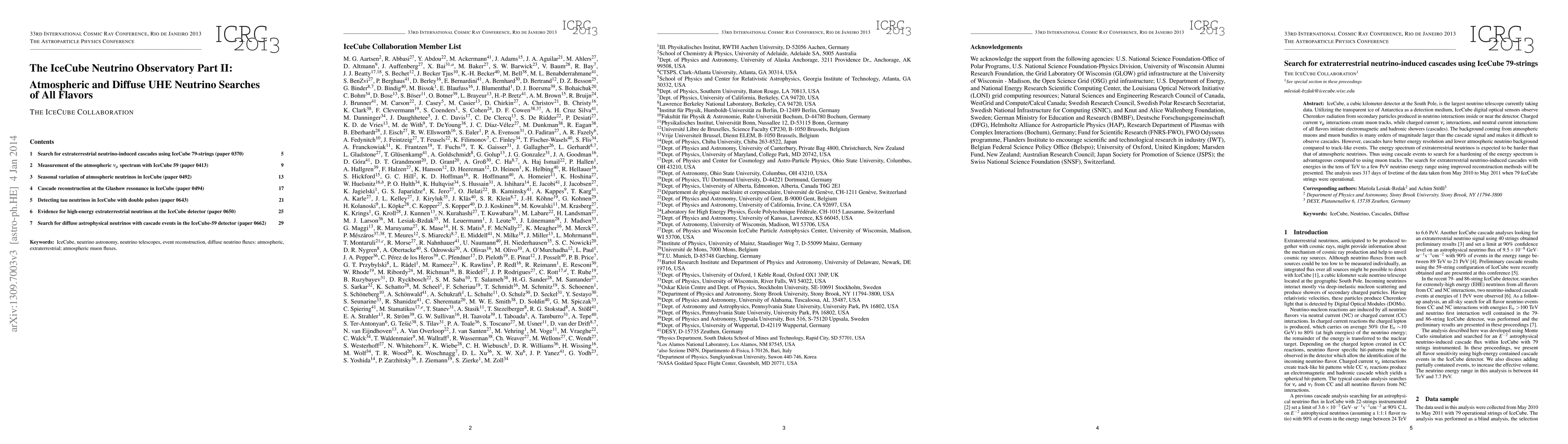 Papers on atmospheric and diffuse UHE neutrino searches of all flavors submitted to the 33nd International Cosmic Ray Conference (Rio de Janeiro 2013) by the IceCube Collaboration.