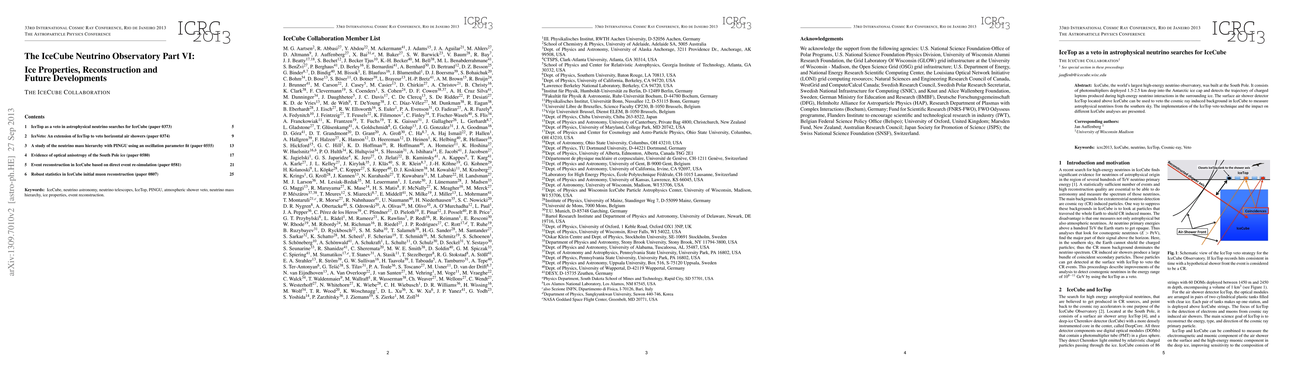 Papers on ice properties, reconstruction and future developments submitted to the 33nd International Cosmic Ray Conference (Rio de Janeiro 2013) by the IceCube Collaboration.