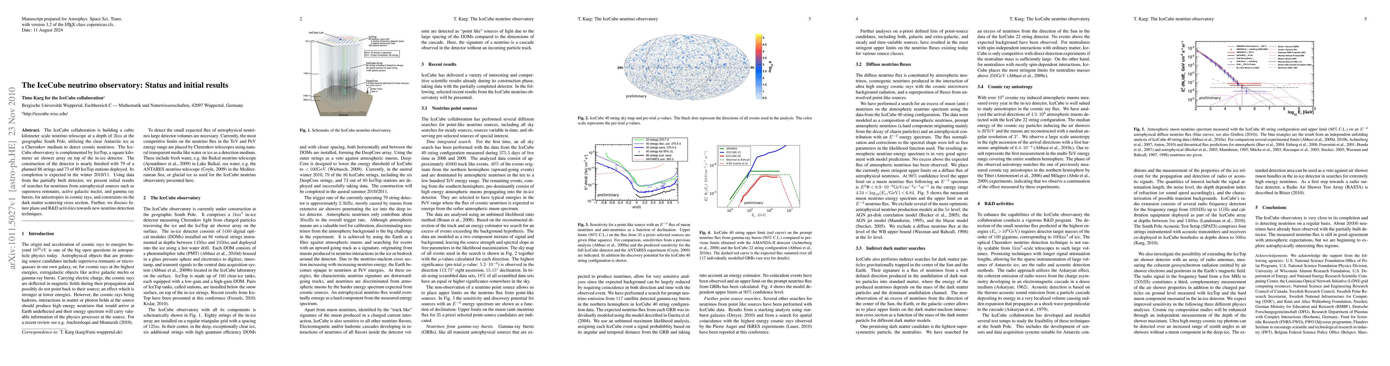 The IceCube neutrino observatory, nearing completion at the South Pole, employs Antarctic ice as a medium to detect cosmic neutrinos. Initial results from the partially built detector include searches for neutrinos from astrophysical sources and constraints on dark matter interactions, alongside future plans for advanced detection techniques.