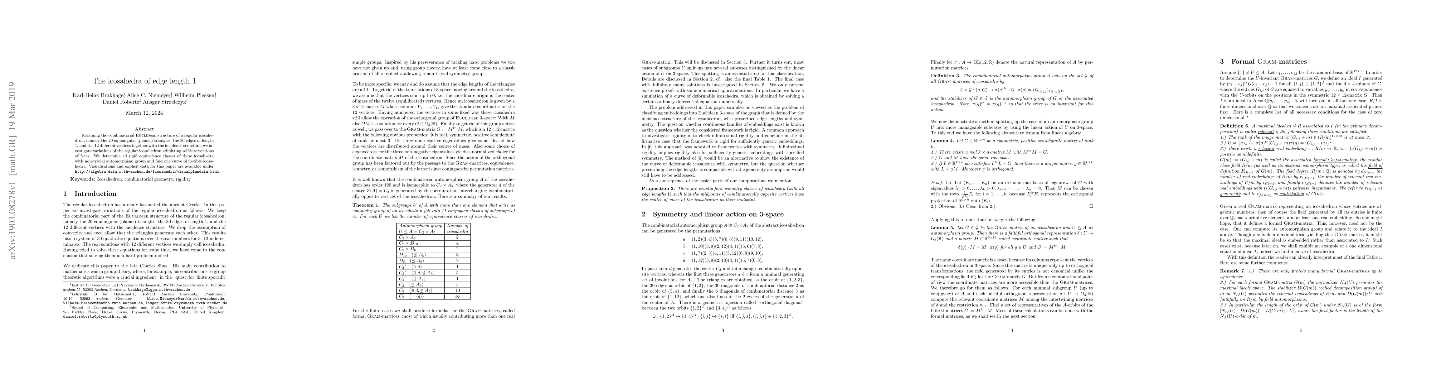 Retaining the combinatorial Euclidean structure of a regular icosahedron, namely the 20 equiangular (planar) triangles, the 30 edges of length 1, and the 12 different vertices together with the incidence structure, we investigate variations of the regular icosahedron admitting self-intersections of faces. We determine all rigid equivalence classes of these icosahedra with non-trivial automorphism group and find one curve of flexible icosahedra. Visualisations and explicit data for this paper are available under http://algebra.data.rwth-aachen.de/Icosahedra/visualplusdata.html.