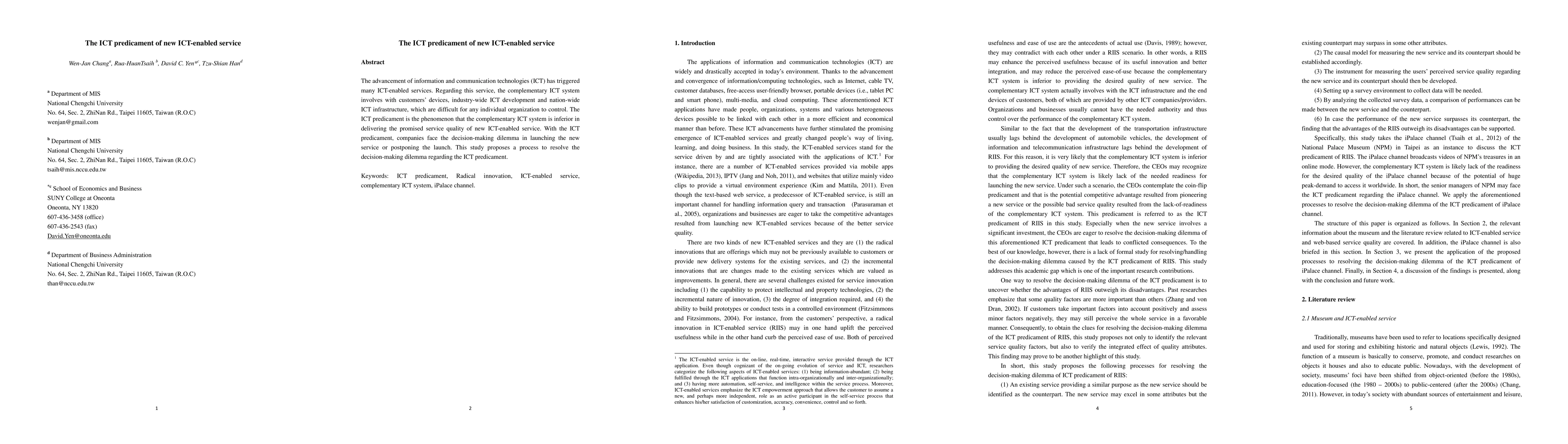 The advancement of information and communication technologies (ICT) has triggered many ICT-enabled services. Regarding this service, the complementary ICT system involves with customers' devices, industry-wide ICT development and nation-wide ICT infrastructure, which are difficult for any individual organization to control. The ICT predicament is the phenomenon that the complementary ICT system is inferior in delivering the promised service quality of new ICT-enabled service. With the ICT predicament, companies face the decision-making dilemma in launching the new service or postponing the launch. This study proposes a process to resolve the decision-making dilemma regarding the ICT predicament.
