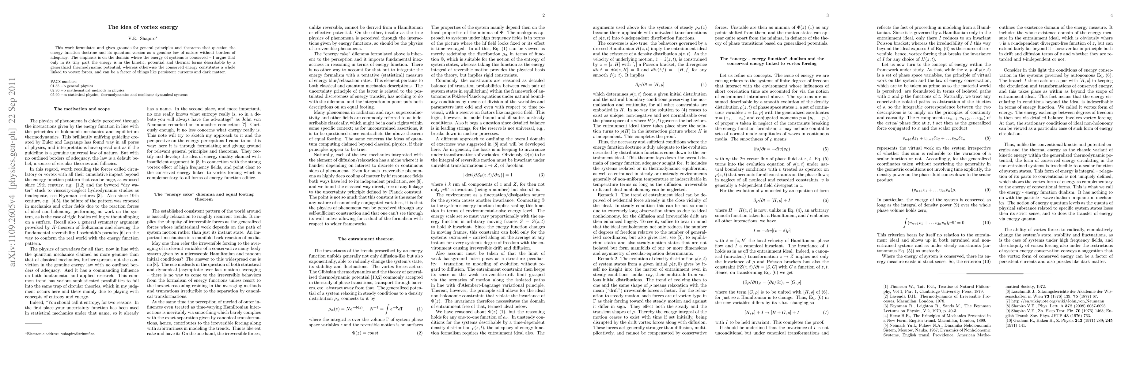 This paper challenges traditional energy function doctrine by proposing that conserved energy is linked to vortex forces beyond kinetic, potential, and thermal forms, with implications for persistent currents and dark matter.