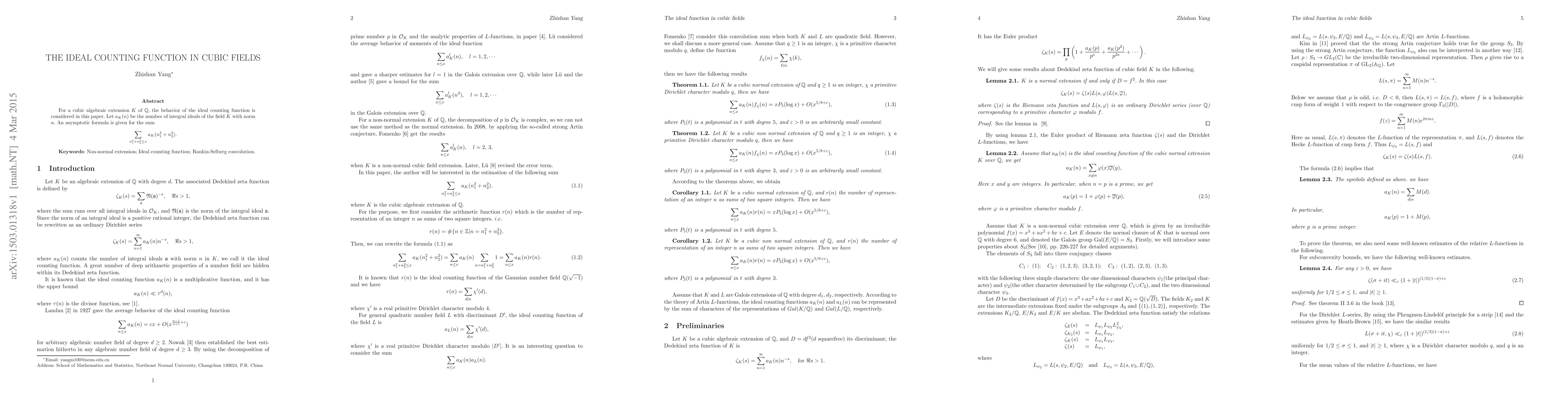 For a cubic algebraic extension $K$ of $\mathbb{Q}$, the behavior of the ideal counting function is considered in this paper. Let $a_{K}(n)$ be the number of integral ideals of the field $K$ with norm $n$. An asymptotic formula is given for the sum $$ \sum\limits_{n_{1}^2+n_{2}^2\leq x}a_{K}(n_{1}^2+n_{2}^2). $$