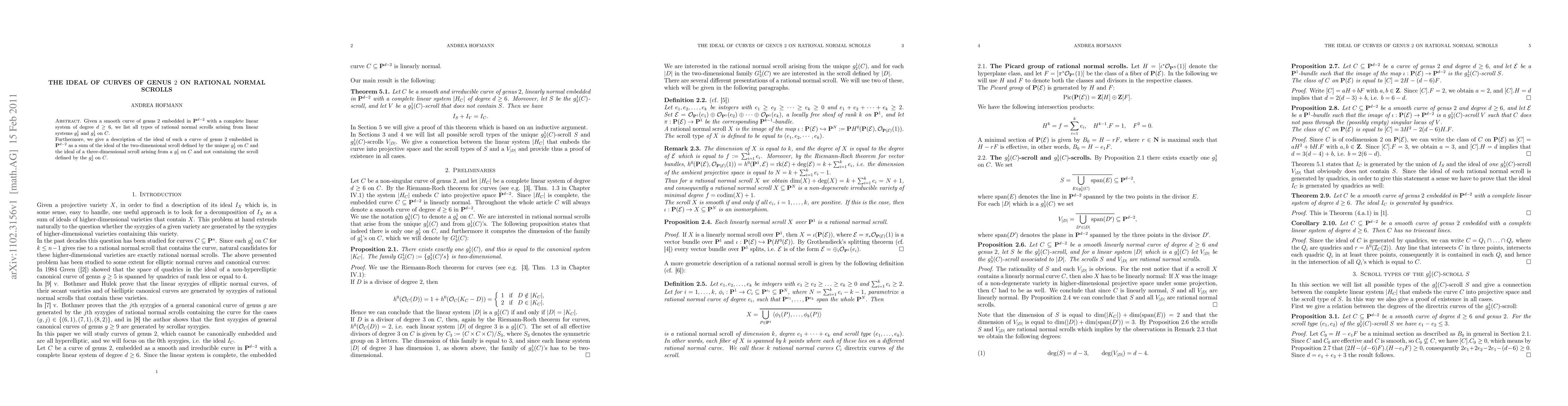 Given a smooth curve of genus 2 embedded in P^(d-2) with a complete linear system of degree d>=6, we list all types of rational normal scrolls arising from linear systems g^1_2 and g^1_3 on C. Furthermore, we give a description of the ideal of such a curve of genus 2 embedded in P^(d-2) as a sum of the ideal of the two-dimensional scroll defined by the unique g^1_2 on C and the ideal of a three-dimensional scroll arising from a g^1_3 on C and not containing the scroll defined by the g^1_2 on C.