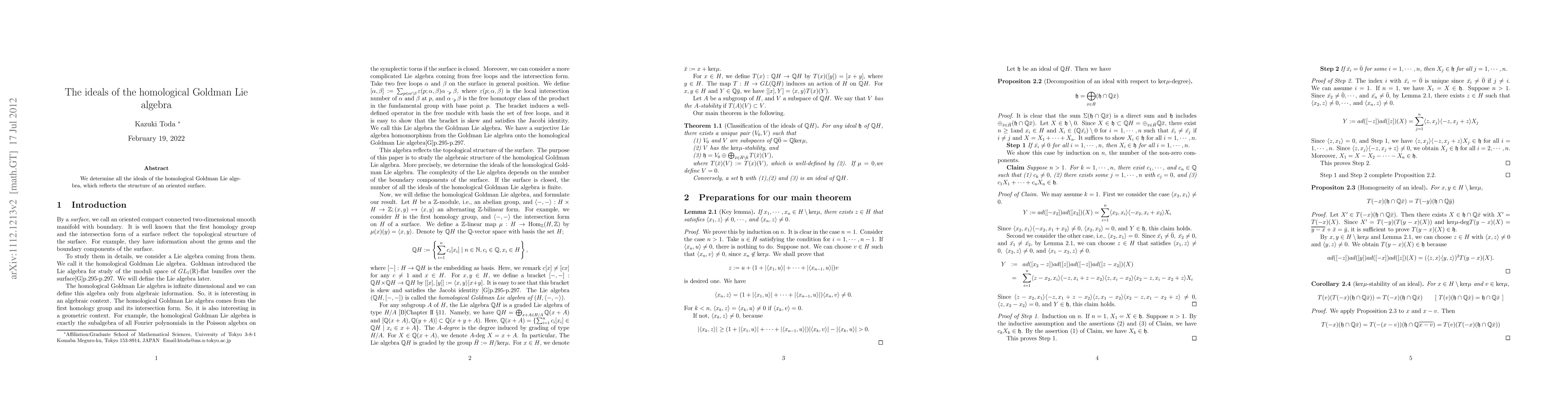 Summary: This paper identifies all the ideals of the homological Goldman Lie algebra, providing insights into the structural properties of oriented surfaces. The findings elucidate the algebraic framework underlying the topology of these surfaces.