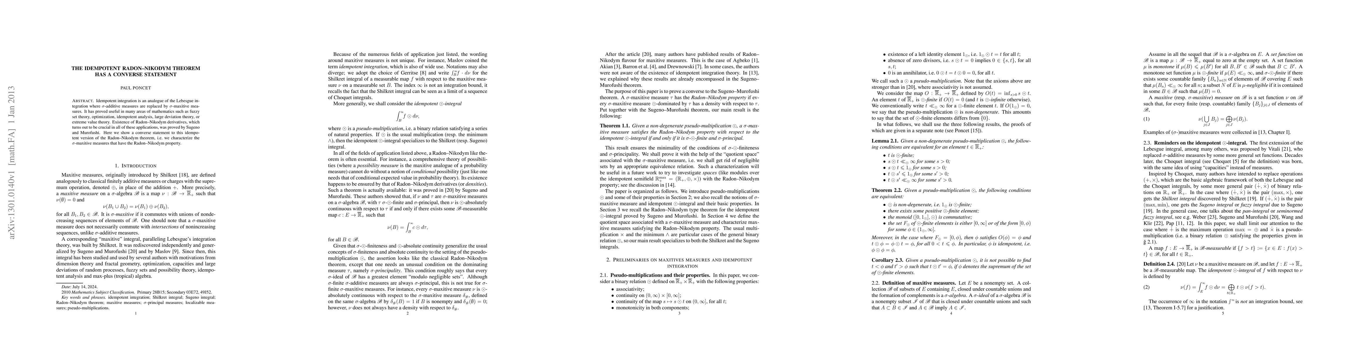 This paper proves a converse to the idempotent Radon-Nikodym theorem, establishing conditions under which $\sigma$-maxitive measures possess a Radon-Nikodym derivative, an important result in idempotent integration applications such as fuzzy set theory and optimization.