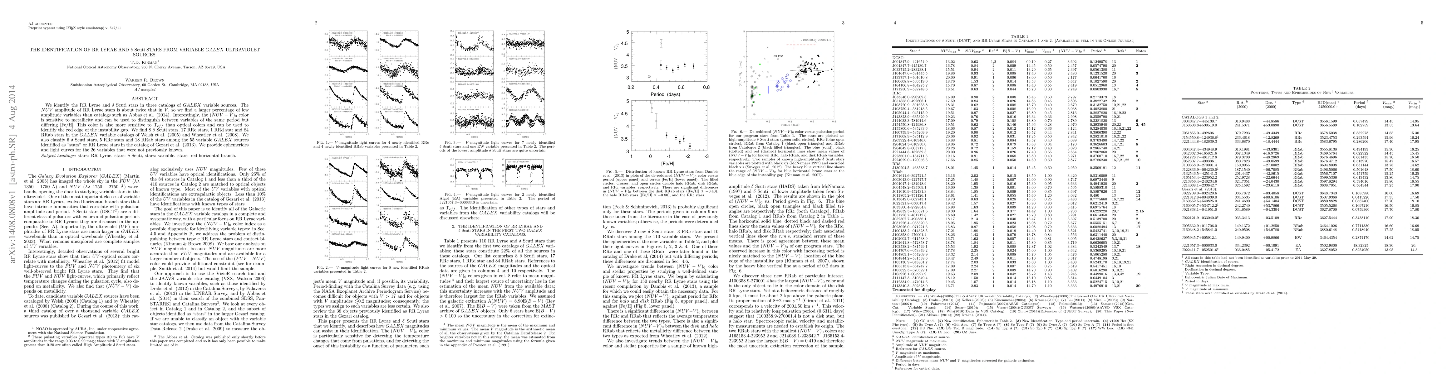 We identify the RR Lyrae and delta Scuti (DSCT) stars in three catalogs of GALEX variable sources. The NUV amplitude of RR Lyrae stars is about twice that in V-band, so we find a larger percentage of low amplitude variables than catalogs such as Abbas et al (2014). Interestingly, the (NUV-V)_0 color is sensitive to metallicity and can be used to distinguish between variables of the same period but differing [Fe/H]. This color is also more sensitive to T_eff than optical colors and can be used to identify the red edge of the instability gap. We find 8 DSCT stars, 17 RRc stars, 1 RRd star and 84 RRab stars in the GALEX variable catalogs of Welsh et al (2005) and Wheatley et al (2008). We also classify 6 DSCT stars, 5 RRc stars and 18 RRab stars among the 55 variable GALEX sources identified as "stars" or RR Lyraes in the catalog of Gezari et al (2013). We provide ephemerides and light curves for the 26 variables that were not previously known.