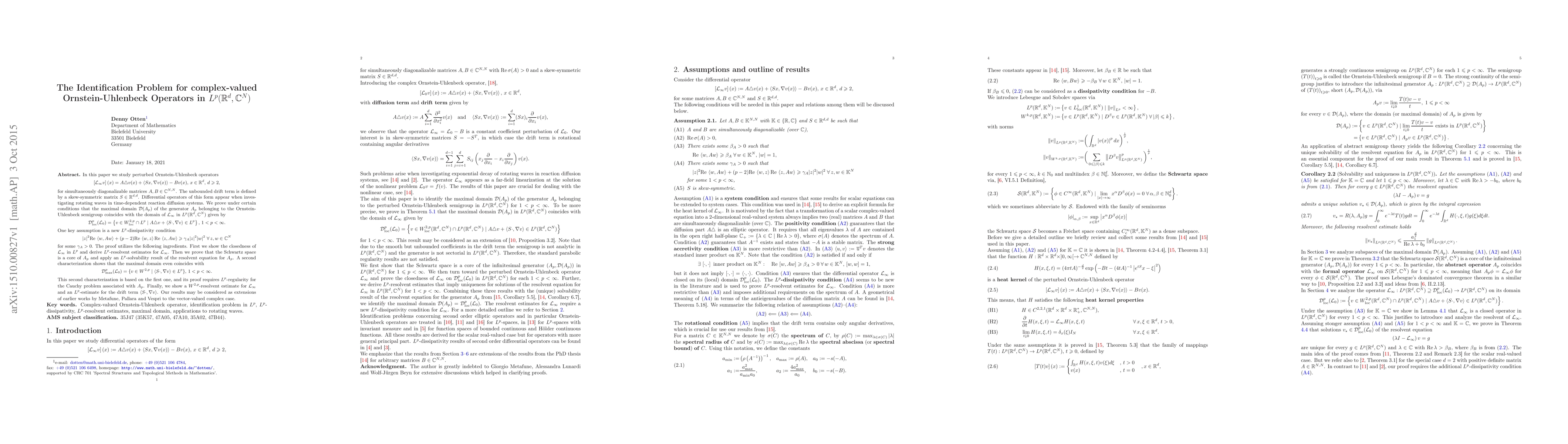 In this paper we study perturbed Ornstein-Uhlenbeck operators \begin{align*}[\mathcal{L}_{\infty} v](x)=A\triangle v(x)+\langle Sx,\nabla v(x)\rangle-B v(x),\,x\in\mathbb{R}^d,\,d\geqslant 2,\end{align*} for simultaneously diagonalizable matrices $A,B\in\mathbb{C}^{N,N}$. The unbounded drift term is defined by a skew-symmetric matrix $S\in\mathbb{R}^{d,d}$. Differential operators of this form appear when investigating rotating waves in time-dependent reaction diffusion systems. We prove under certain conditions that the maximal domain $\mathcal{D}(A_p)$ of the generator $A_p$ belonging to the Ornstein-Uhlenbeck semigroup coincides with the domain of $\mathcal{L}_{\infty}$ in $L^p(\mathbb{R}^d,\mathbb{C}^N)$ given by \begin{align*}\mathcal{D}^p_{\mathrm{loc}}(\mathcal{L}_0)=\left\{v\in W^{2,p}_{\mathrm{loc}}\cap L^p\mid A\triangle v+\langle S\cdot,\nabla v\rangle\in L^p\right\},\,1