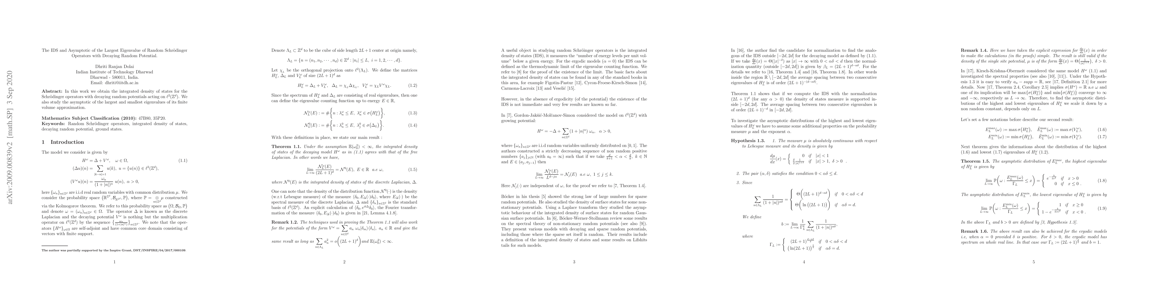In this work we obtain the integrated density of states for the Schr\"{o}dinger operators with decaying random potentials acting on $\ell^2(\mathbb{Z}^d)$. We also study the asymptotic of the largest and smallest eigenvalues of its finite volume approximation