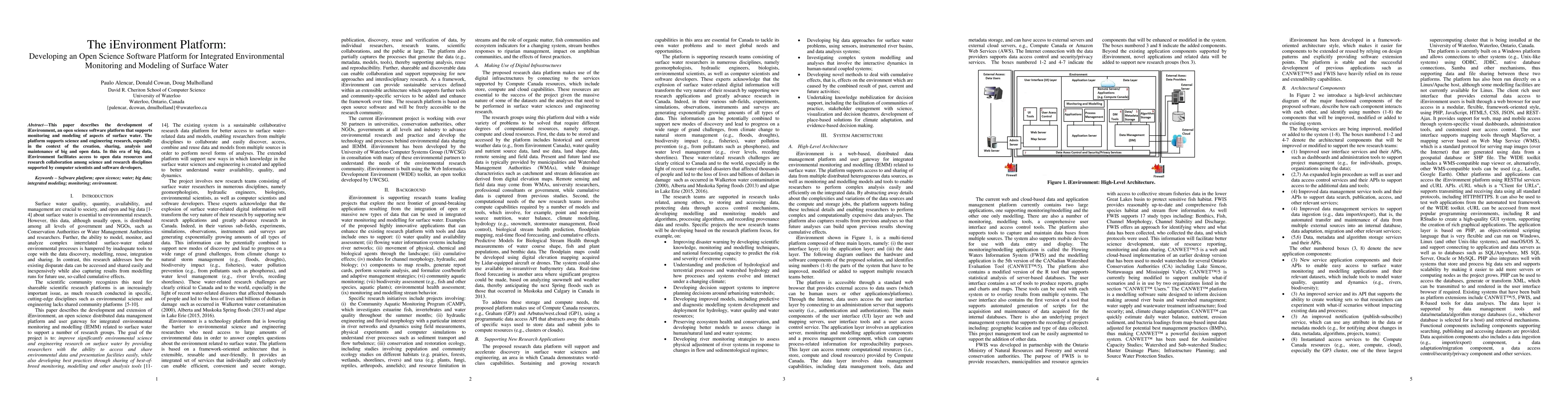 The iEnvironment platform is an open science software tool designed for integrated monitoring and modeling of surface water, promoting collaboration and access to big data across scientific disciplines. It aims to enhance research efficiency and data sharing among various stakeholders in environmental science and engineering.
