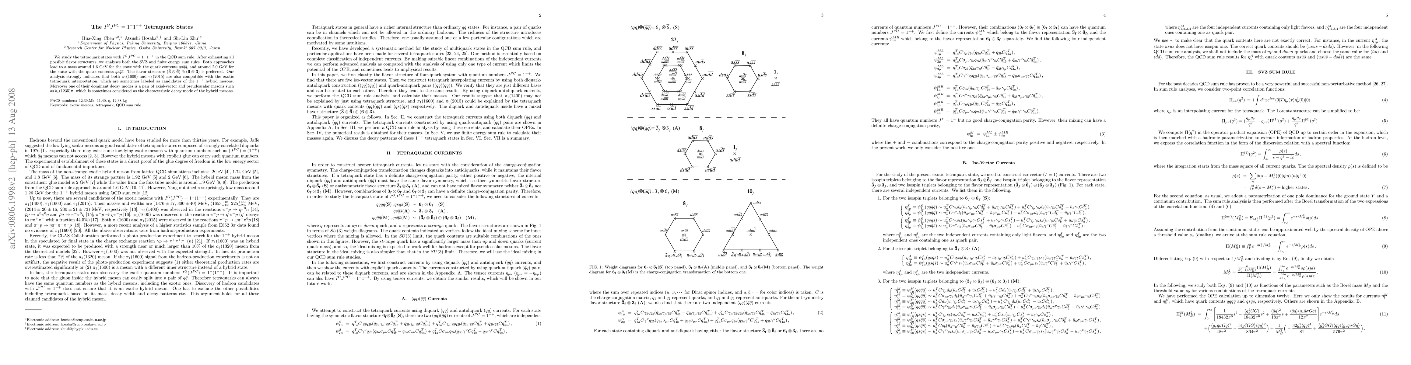We study the tetraquark states with I^G J^{PC}=1^- 1^{-+} in the QCD sum rule. After exhausting all possible flavor structures, we analyses both the SVZ and finite energy sum rules. Both approaches lead to a mass around 1.6 GeV for the state with the quark contents q q q_bar q_bar, and around 2.0 GeV for the state with the quark contents q s q_bar s_bar. The flavor structure 3_bar * 6_bar + 6 * 3 is preferred. Our analysis strongly indicates that both pi1(1600) and pi1(2015) are also compatible with the exotic tetraquark interpretation, which are sometimes labeled as candidates of the 1^{-+} hybrid mesons. Moreover one of their dominant decay modes is a pair of axial-vector and pseudoscalar mesons such as b1(1235) pi, which is sometimes considered as the characteristic decay mode of the hybrid mesons.