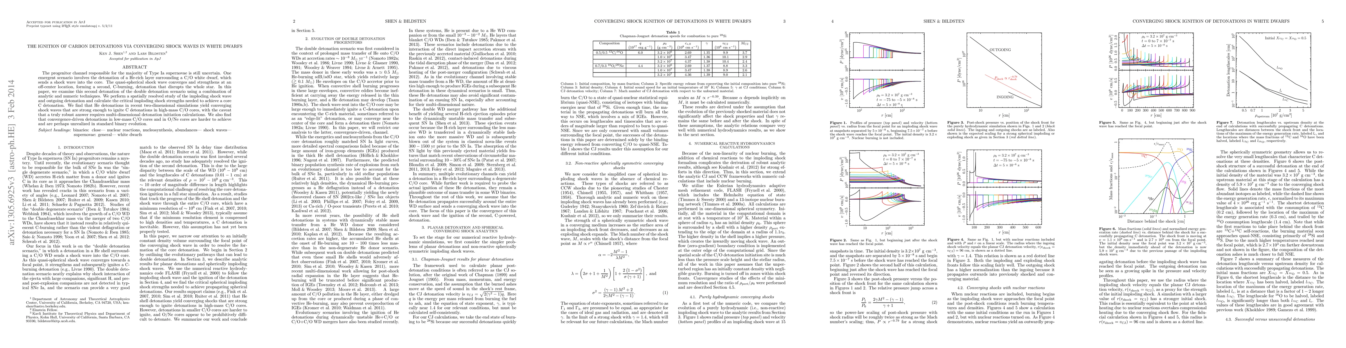 This paper investigates the double detonation scenario in white dwarfs, where a converging shock wave from a He-rich layer detonation ignites a subsequent C-burning detonation in the core. The study finds that recent simulations suggest strong enough shock waves can trigger C detonations in high-mass cores, though multi-dimensional calculations are needed for a definitive answer.