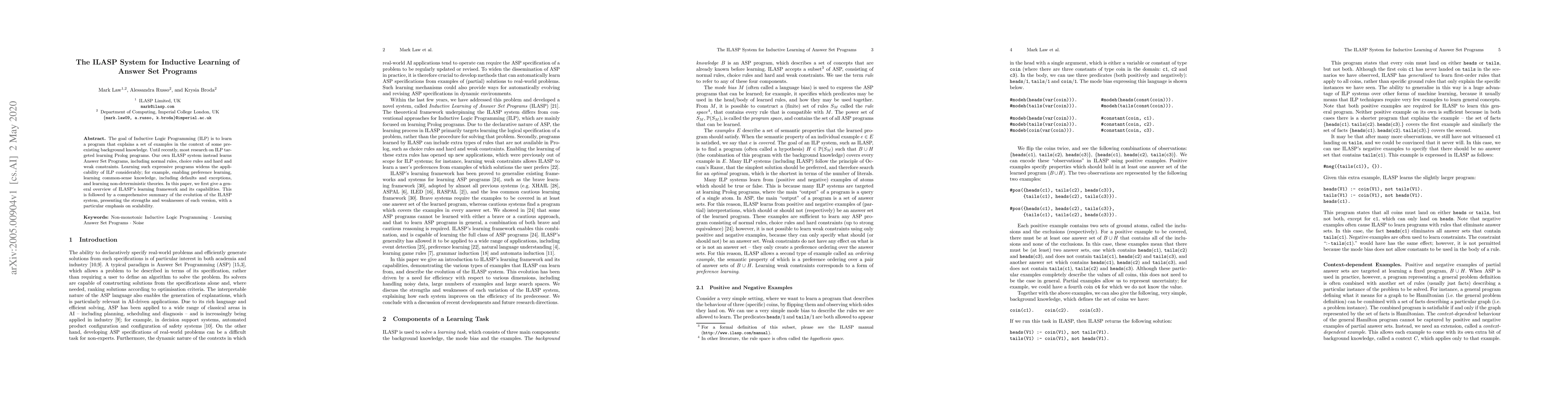 The ILASP system advances Inductive Logic Programming by learning Answer Set Programs, which include complex rules and constraints. This paper provides an overview of ILASP's framework, its evolution, and its scalability, highlighting its enhanced applicability for preference learning and common-sense knowledge.