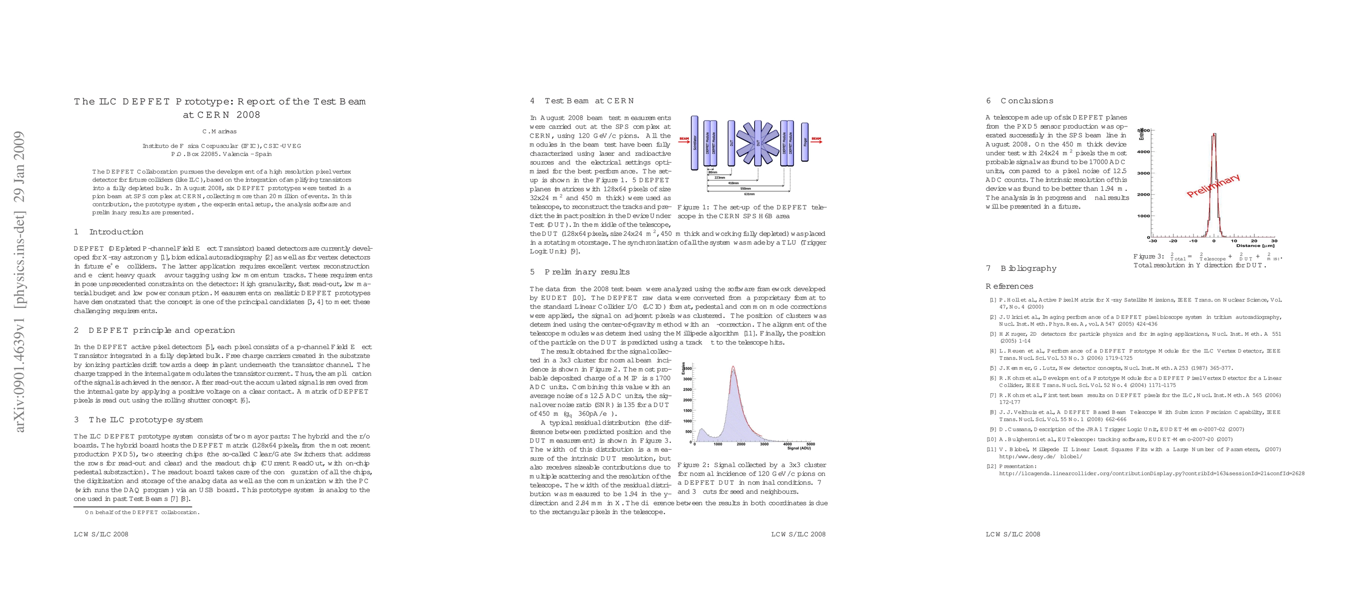 The DEPFET Collaboration pursues the development of a high resolution pixel vertex detector for future colliders (like ILC), based on the integration of amplifying transistors into a fully depleted bulk. In August 2008, six DEPFET prototypes were tested in a pion beam at SPS complex at CERN, collecting more than 20 million of events. In this contribution, the prototype system, the experimental setup, the analysis software and preliminary results are presented.