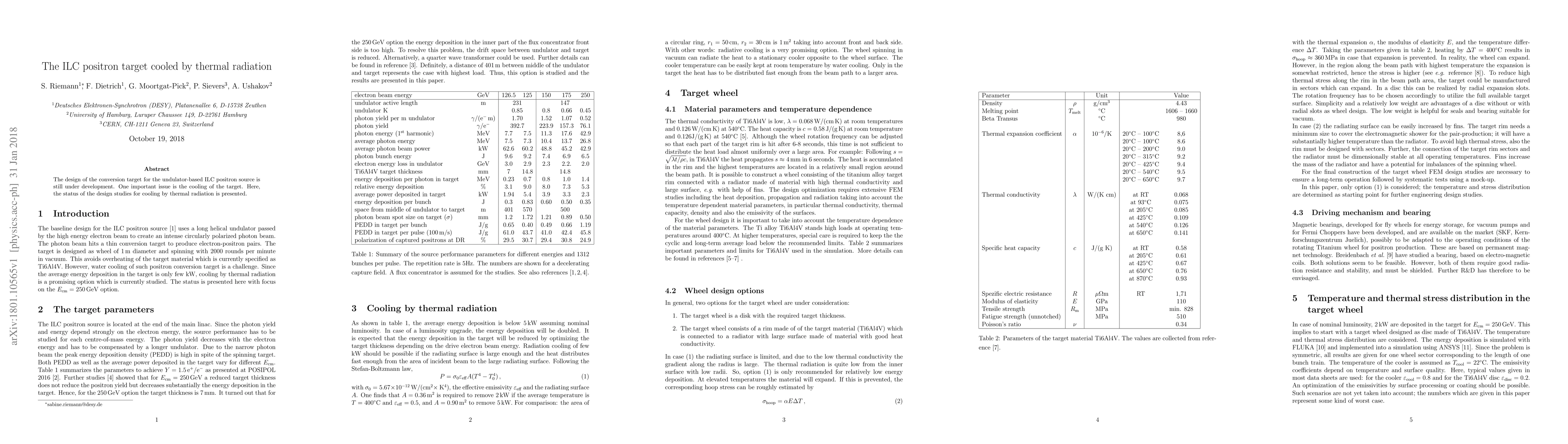 The paper presents detailed simulations and analysis of a thermal radiation-based cooling system for an ILC positron source target, including stress distribution and the influence of radial expansion slots.