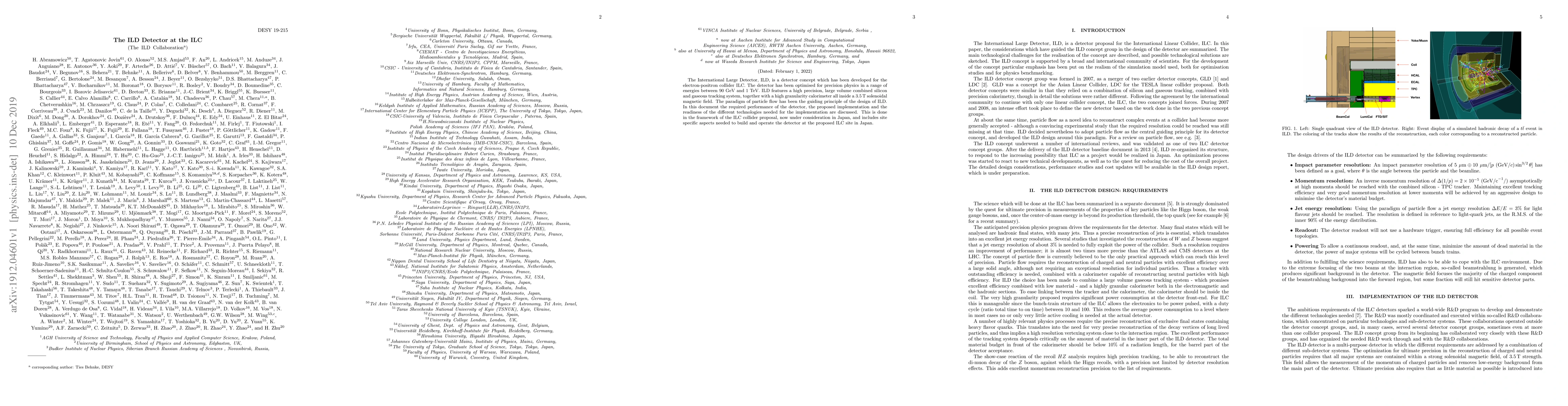 The ILD detector, designed for the International Linear Collider (ILC), aims for precision physics across energies from 90 GeV to 1 TeV. It features a sophisticated silicon and gaseous tracking system, high granularity calorimeter, and operates within a 3.5 T solenoidal magnetic field, all guided by a particle flow paradigm.