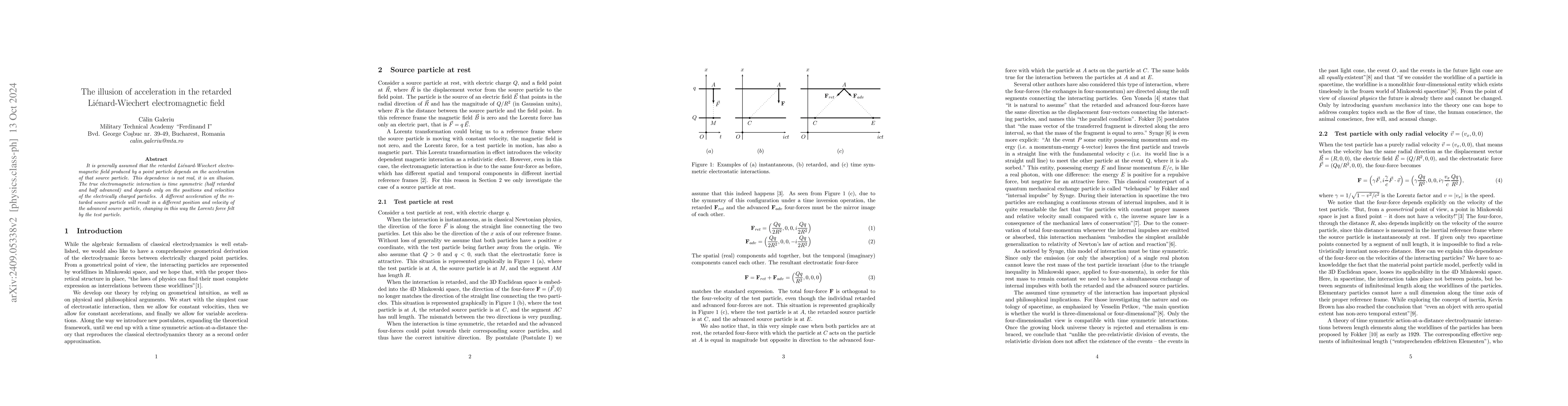 This paper argues that the perceived dependence of the retarded Lienard-Wiechert electromagnetic field on the source particle's acceleration is illusory. It posits that the true interaction is time symmetric and only relies on the positions and velocities of charged particles, not their accelerations.