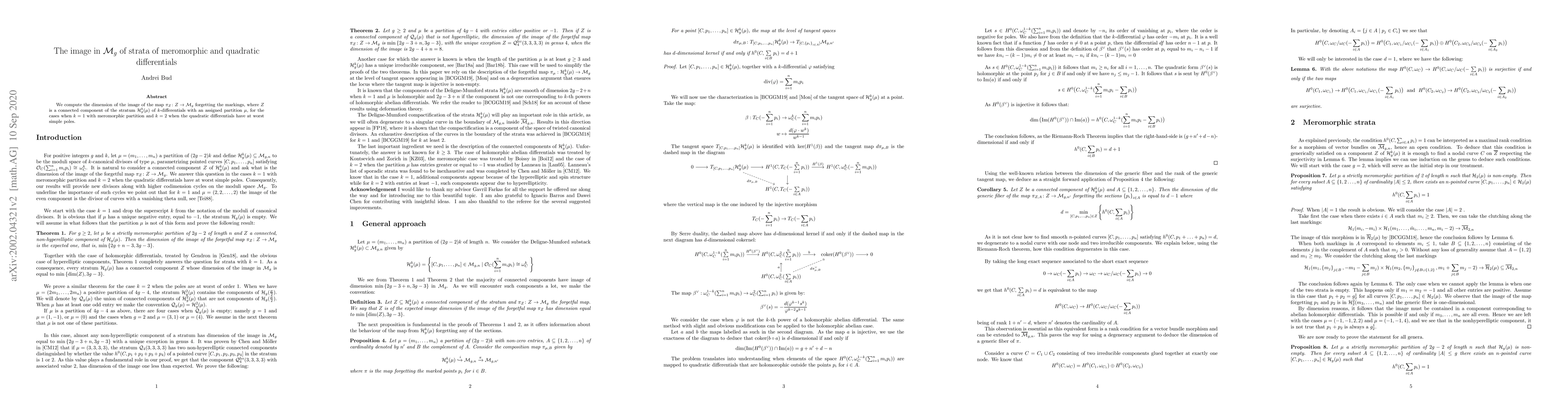 This paper calculates the dimension of the image of a forgetful map from $Z$ to the moduli space of curves for strata of meromorphic and quadratic differentials, focusing on cases where $k=1$ and $k=2$ with specific conditions on the differentials.