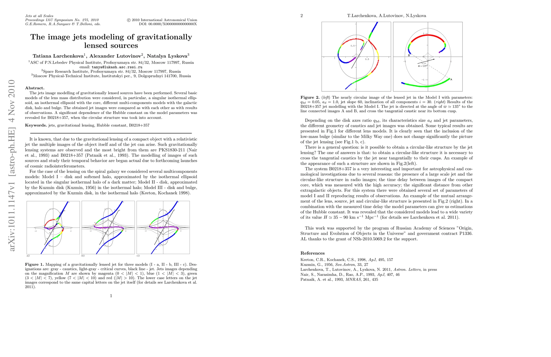 The jets image modelling of gravitationally lensed sources have been performed. Several basic models of the lens mass distribution were considered, in particular, a singular isothermal ellipsoid, an isothermal ellipsoid with the core, different multi-components models with the galactic disk, halo and bulge. The obtained jet images were compared as with each other as with results of observations. A significant dependence of the Hubble constant on the model parameters was revealed for B0218+357, when the circular structure was took into account.
