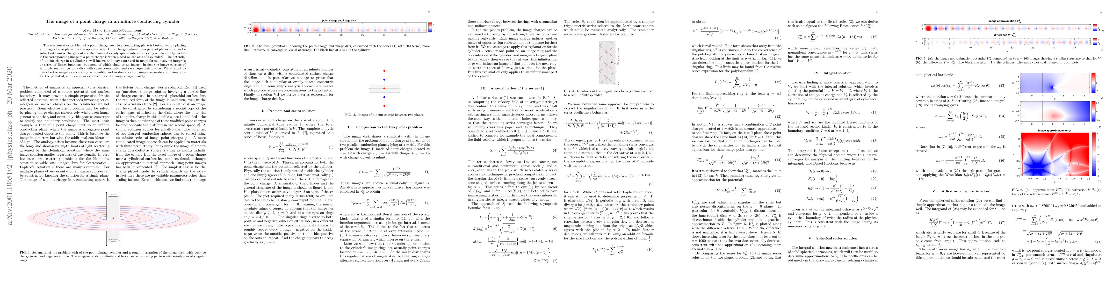 The electrostatics problem of a point charge next to a conducting plane is best solved by placing an image charge placed on the opposite side. For a charge between two parallel planes this can be solved with image charges outside the planes at evenly spaced intervals moving out to infinity. What is the corresponding image of a point charge is when placed on the axis of a cylinder?. The potential of a point charge in a cylinder is well known and may expressed in many forms involving integrals or series of Bessel functions, but none of which elude to an image. In fact the image is complex (in both senses), consisting of infinitely many rings on a disk with some surface charge distribution. This manuscript attempts to describe the image as accurately as possible, and in doing so finds simple accurate approximations for the potential.