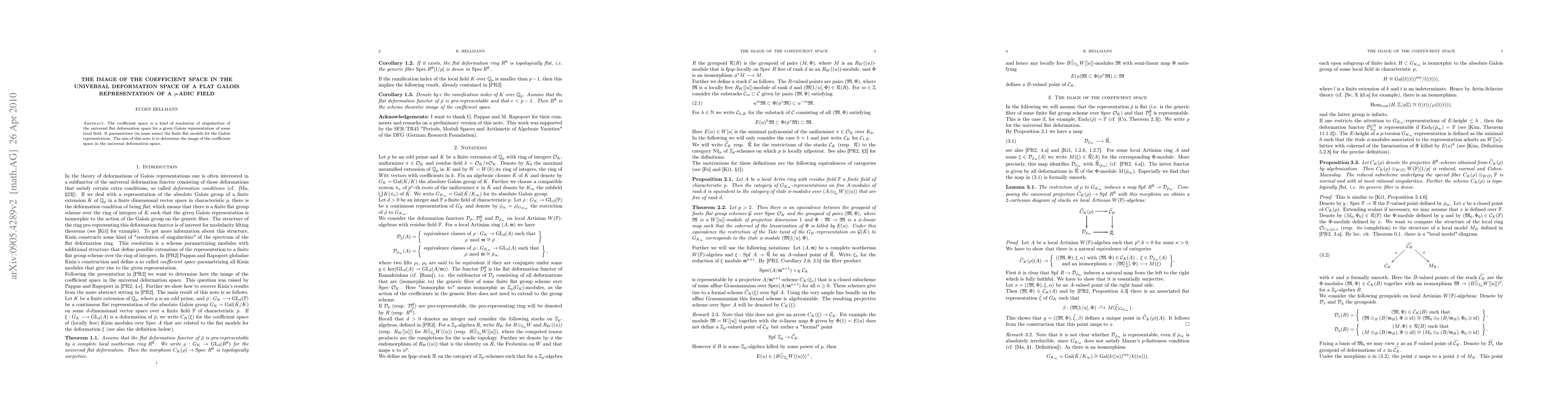 This paper explores the coefficient space, a resolution of singularities in the universal flat deformation space for Galois representations of local fields. It aims to determine the image of the coefficient space in the universal deformation space, providing insights into the finite flat models for these representations.