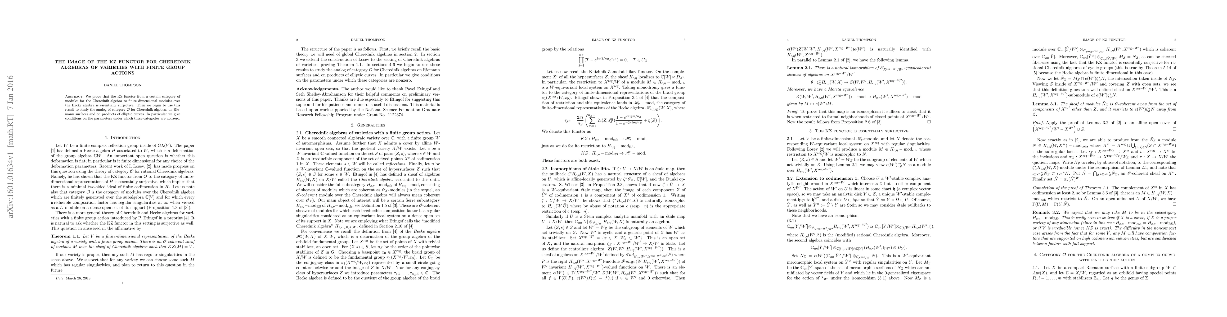 The paper proves the essential surjectivity of the KZ functor for Cherednik algebras and applies this result to study category O analogs for Cherednik algebras on Riemann surfaces and elliptic curve products, establishing conditions for these categories to be non-zero.