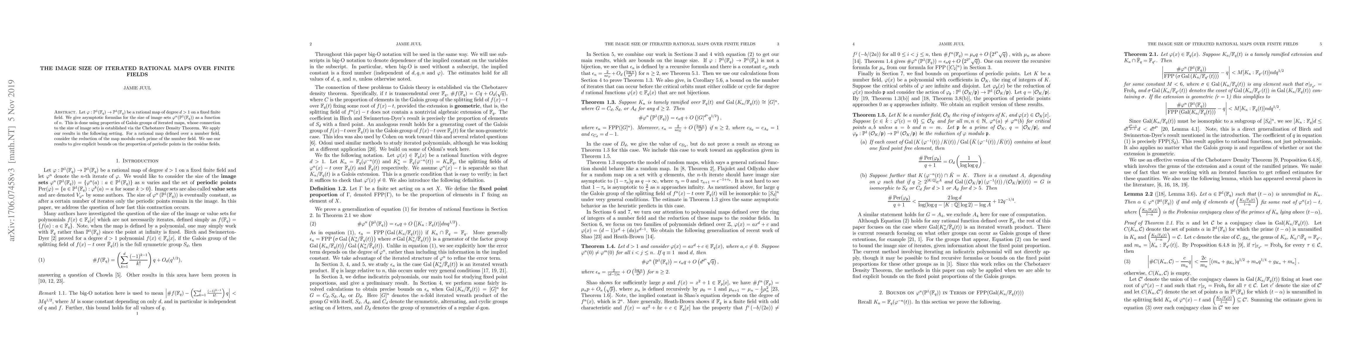 This paper provides asymptotic formulas for the size of image sets of iterated rational maps over finite fields, leveraging properties of Galois groups and the Chebotarev Density Theorem. It also uses these results to derive explicit bounds on the proportion of periodic points in residue fields of rational maps defined over number fields.
