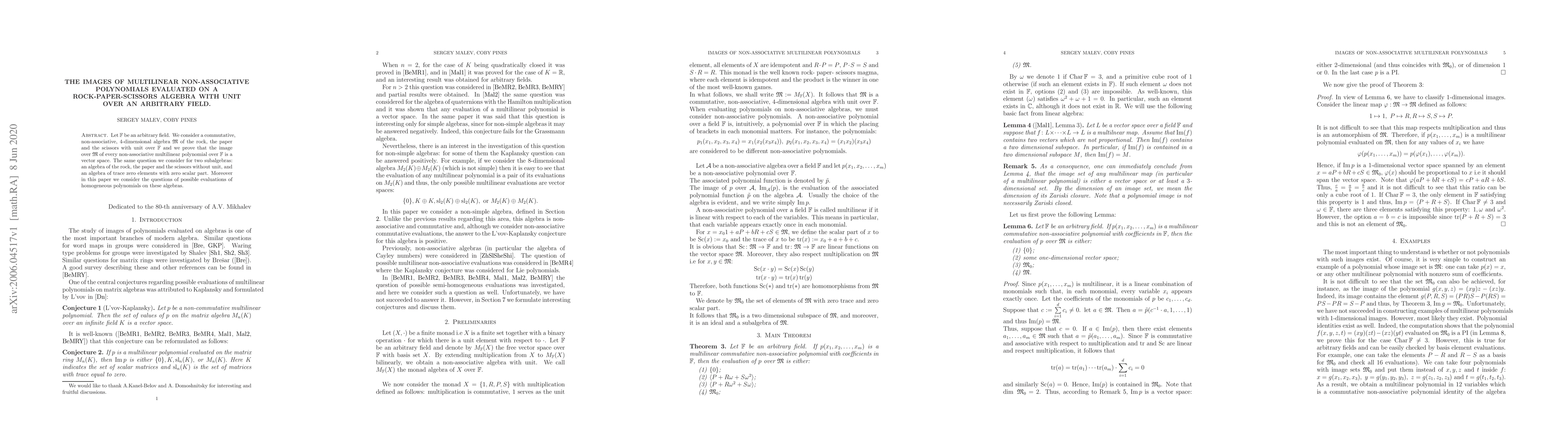This paper proves that the image of non-associative multilinear polynomials over an arbitrary field evaluated on a 4-dimensional rock-paper-scissors algebra is a vector space.