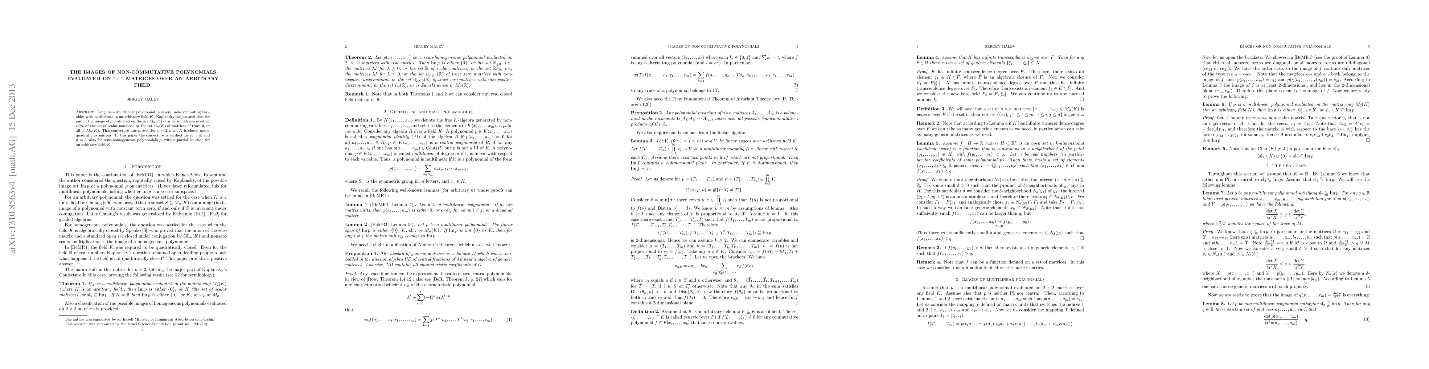 Researchers verified Kaplansky's conjecture for non-commutative polynomials on 2x2 matrices over the real numbers, finding that their images are either zero, scalar, or trace-zero matrices, with partial solutions for arbitrary fields.