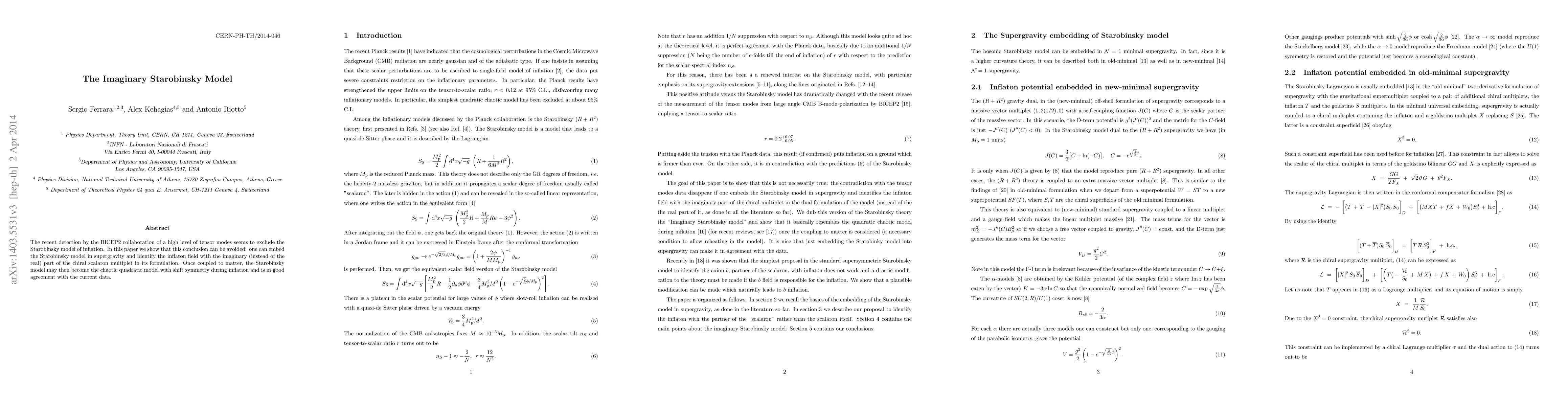 This paper proposes embedding the Starobinsky model of inflation within supergravity by using the imaginary part of the chiral scalaron multiplet, which allows it to align with current observational data despite the BICEP2 findings. This reformulation makes the Starobinsky model compatible with the chaotic quadratic inflationary model.