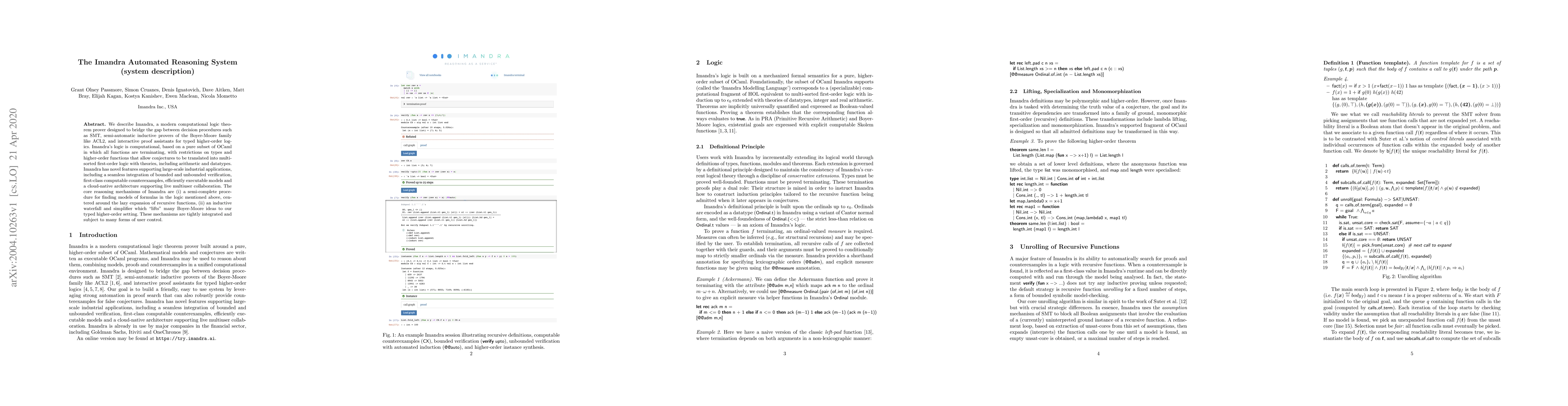 Imandra is a modern computational logic theorem prover that bridges the gap between different types of decision procedures, enabling large-scale industrial applications with features like bounded and unbounded verification, computable counterexamples, and cloud-native collaboration.