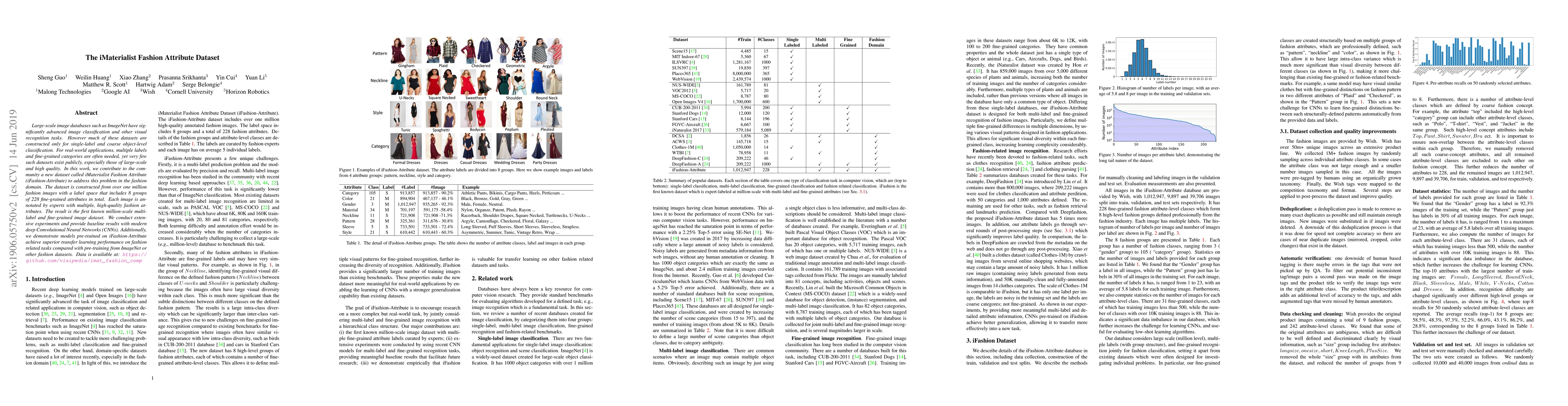 The paper presents the iMaterialist Fashion Attribute (iFashion-Attribute) dataset, a large-scale, multi-label, and fine-grained image dataset for fashion images. The dataset was constructed from over one million images, each annotated with multiple high-quality fashion attributes by experts, categorized into 8 groups of 228 fine-grained attributes.